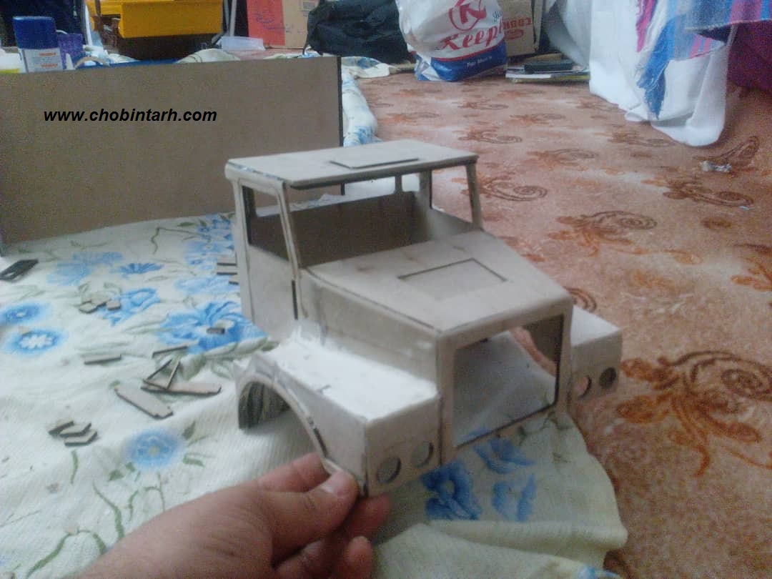 فایل 3 میلیمتر که باید روی فیبر 3 میلیمتر برش بخورد و شامل بدنه می باشد. فایل شش میلیلمتر که باید روی چوب شش میل برش بخورد و شامل شاسی و قطعات چرخ ها می باشد. و فایل گلس که شامل شیشه های کامیون می باشد